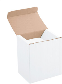 Bílá papírová krabička na hrnek o objemu 300/400 ml.