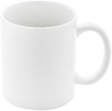 Bílý keramický hrnek pro sublimační potisk vhodný do myčky na nádobí, 300 ml. V bílé papírové krabici.