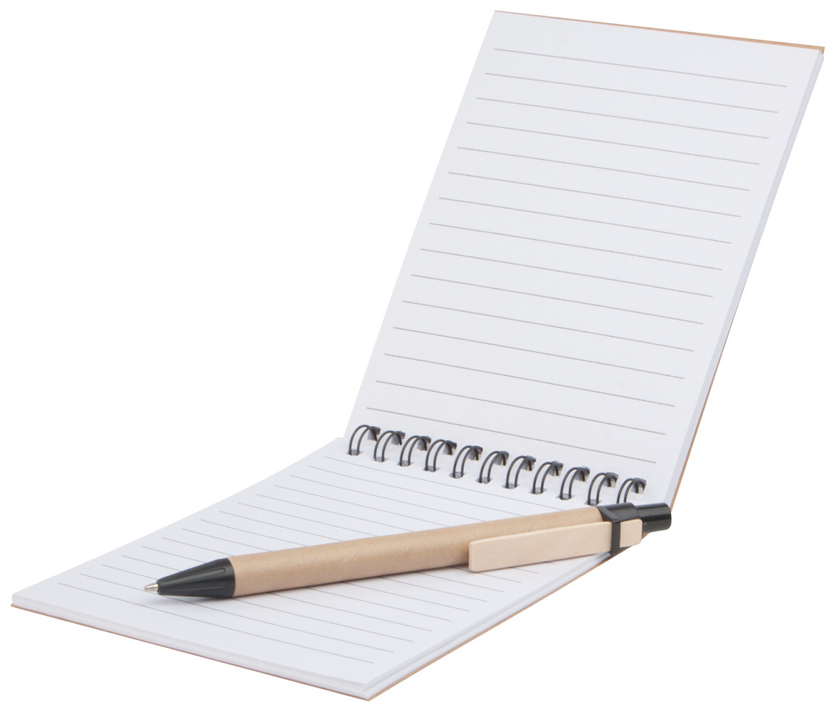 Poznámkový blok s kuličkovým perem Negundo, přírodní, černá