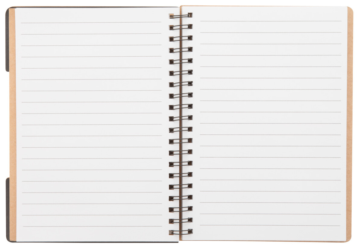Blok z recyklovaného papíru se spirálou na hřbetu, se 60 linkovanými listy a se samolepícími lístky (5x25 ks).