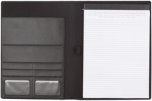 A4 sloha na dokumenty s deskami z PU kůže a plátna s kovovým štítkem a s 20 listým linkovaným blokem.