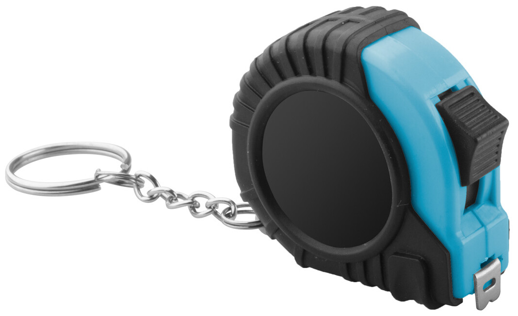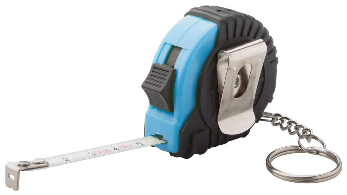 Plastový svinovací 2 m s aretací, kovovým klipem a s přívěškem na klíče.