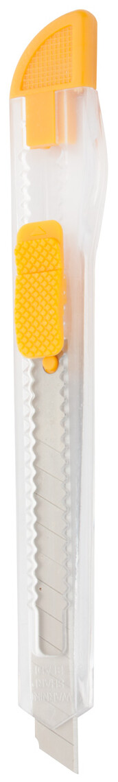 Malý plastový odlamovací nůž, transparentní.