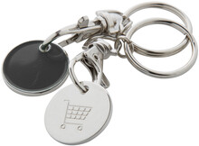 Kovový přívěšek na klíče se žetonem do nákupního košíku. Jedna strana mince je barevná, na druhé je vyražen nákupní vozík. Velikost: ø23×1,7 mm.