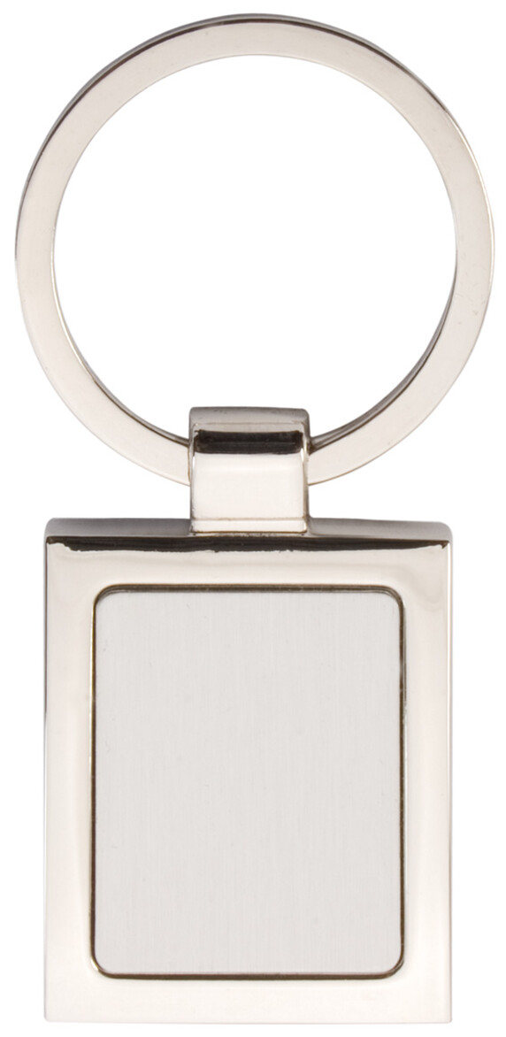 Kovový přívěšek na klíče v krabičce z černého kartonu.