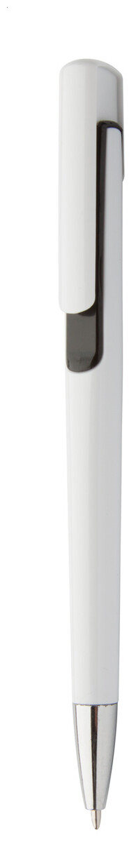 Plastové kuličkové pero s barevnými doplňky a chromovou špičkou. Dodáváno s modrou náplní.