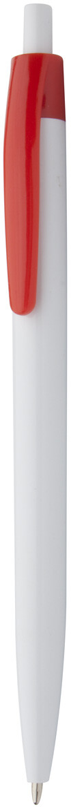 Plastové kuličkové pero s bílým tělem a barevným klipem, s modrou náplní.