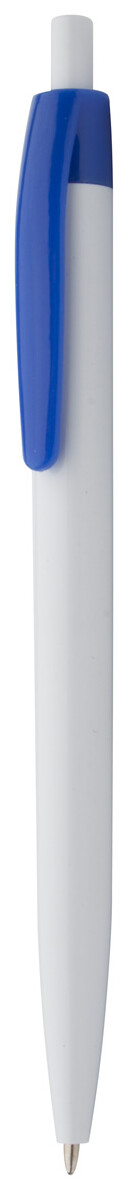 Plastové kuličkové pero s bílým tělem a barevným klipem, s modrou náplní.