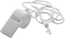 Plastová píšťalka se šňůrkou v barvě.
