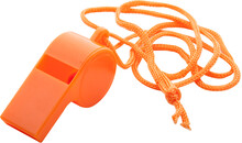 Plastová píšťalka se šňůrkou v barvě.