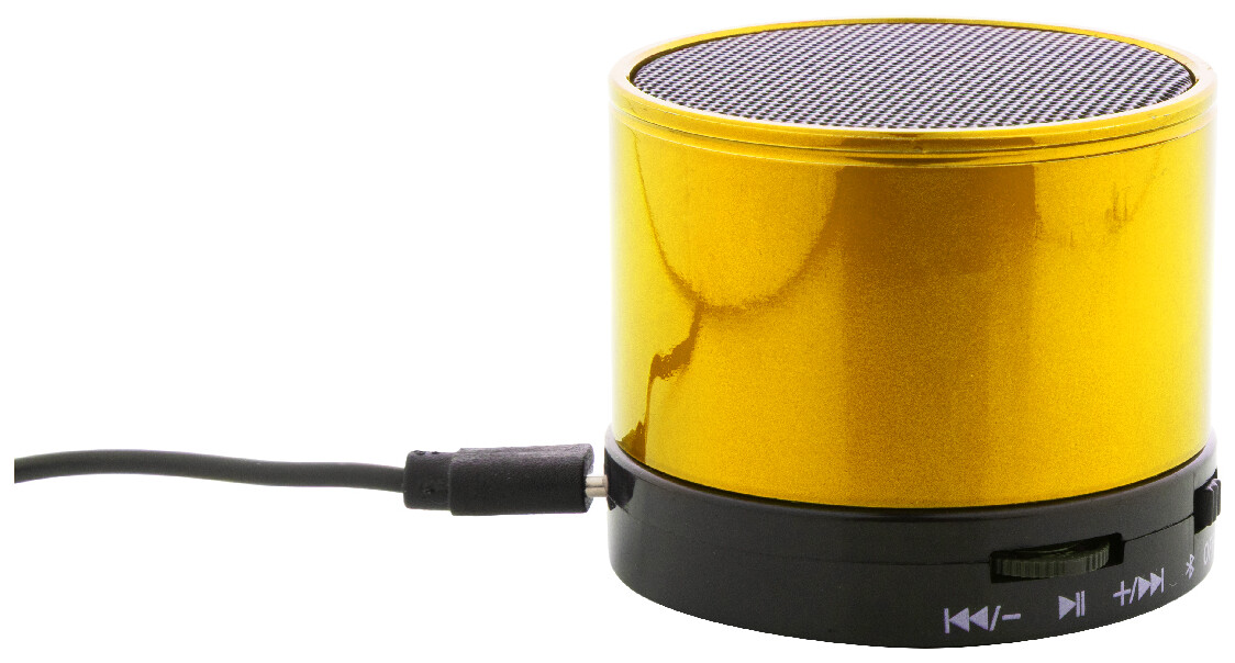 Bezdrátový reproduktor s kovovým krytem. S rádiem, přehrávačem MP3, funkcí handsfree a vestavěnou dobíjecí baterií. Včetně USB nabíječky a aux-in kabelu.