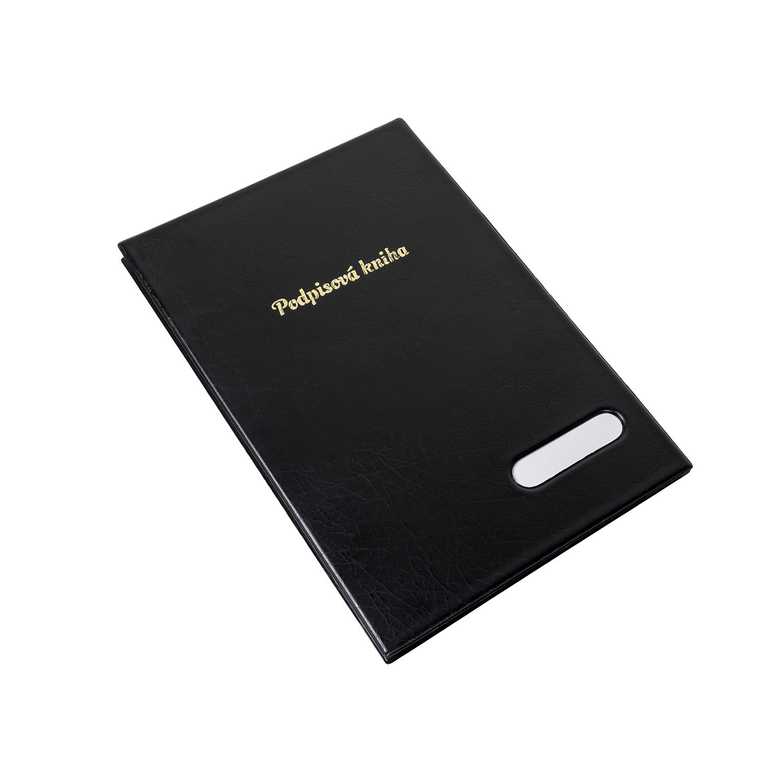 Univerzální podpisová kniha pro formát A4, 16 listů, tvrdé desky z materiálu HANIBAL - imitace kůže, barva: černá.