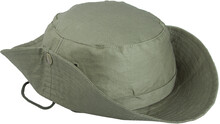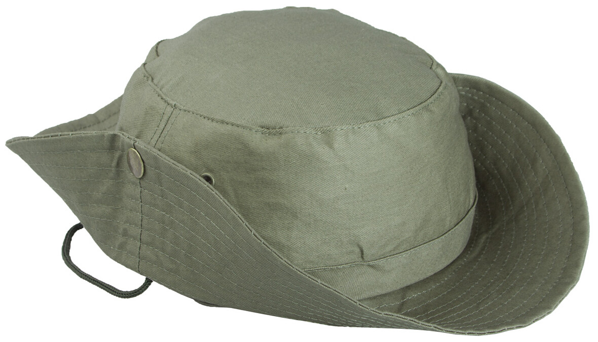100% bavlněný klobouk se šňůrkou pod bradu a kovovými sponkami.
