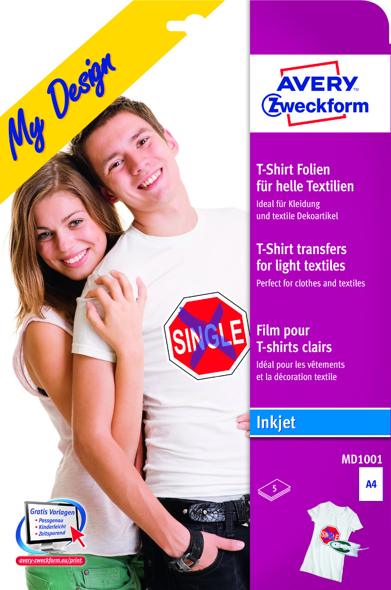 Nažehlovací fólie Avery Zweckform A4, na světlý textil/5l