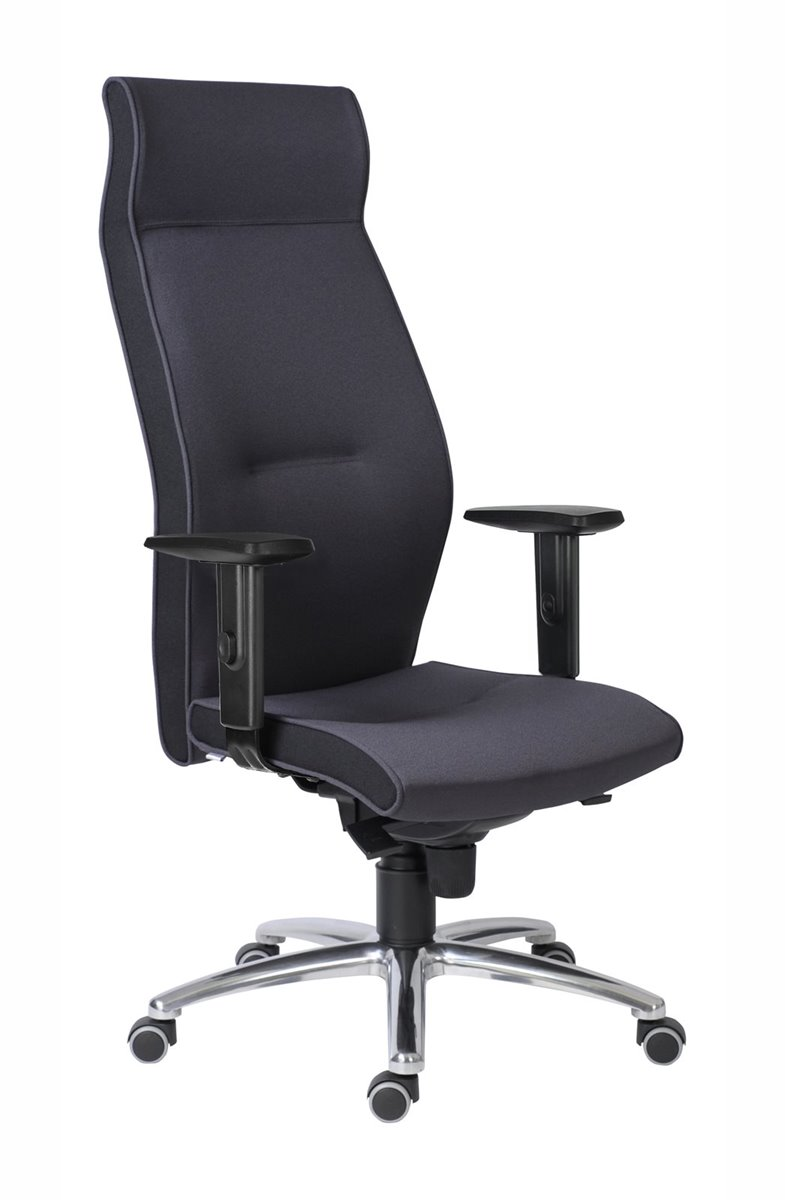 extra vysoký opěrák, ergonomické tvarování sedáku a opěráku, čalounění ze studené pěny, synchronní mechanismus ZEP s nastavením síly protiváhy, ALU leštěný kříž, kolečka pr. 50 mm s gumovou obručí pro všechny typy podlah, výškově nastavitelné područky s měkkou dotykovou plochou, 2 rozměry hloubky sedáku, nosnost 150 kg, český výrobek, záruka 36 měsíců