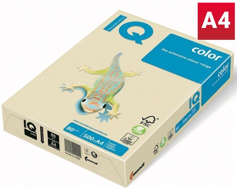 Barevný papír IQ BE66, A4, 80g, pastelová vanilková, 1 balení, 500 listů.