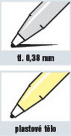 Gelové pero Silver s transparentním plastovým tělem a s vroubkovanou dolní částí pro příjemné držení. Hrot 0,38 mm Vám zajistí velmi tenkou linii psaní.