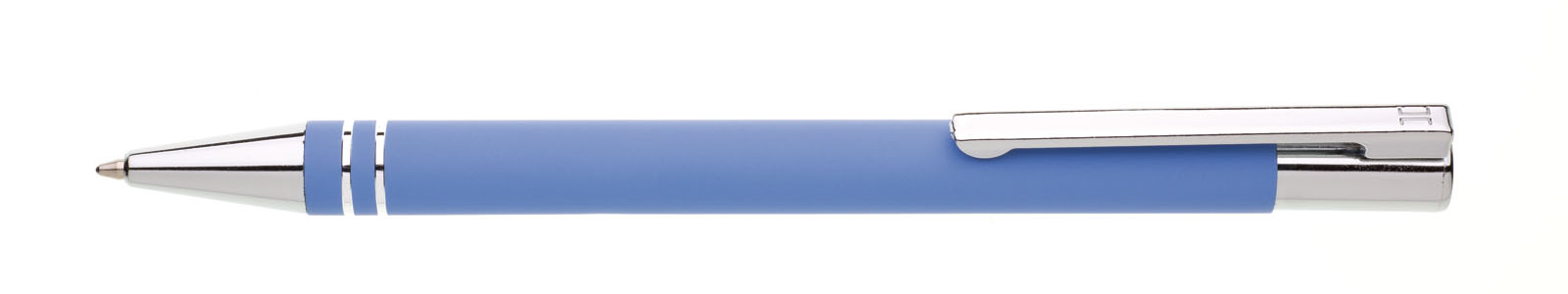 TUBLA - hliníková propiska s rovným světle modrým tělem a stříbrnými doplňky v dárkovém tubusovém pouzdře shodné barvy s propiskou.