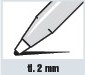 Barevné fixy s vláknovým, tlaku odolným hrotem. Nevysychají, vydrží až 8 týdnů bez víčka. 12 barev, tloušťka hrotu 2 mm. Vypratelné.