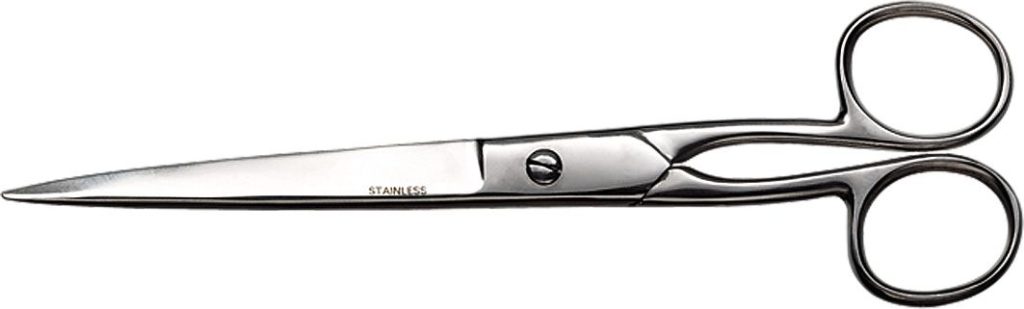 Celokovové nůžky, čepele spojuje kovový šroub, řezné plochy speciálně upraveny pro snadný a precizní střih. Délka nůžek 20 cm, délka čepele 10,5 cm.