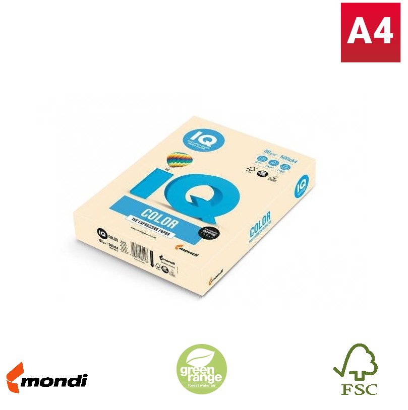 Barevný papír IQ CR20, A4, 160g, pastelová chamois, 1 balení, 250 listů.