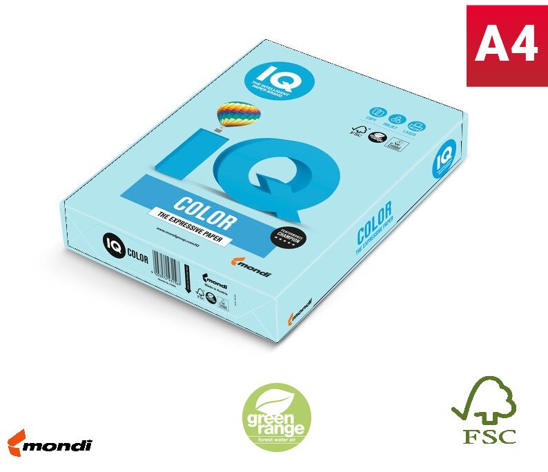 Barevný papír IQ MB30, A4, 160g, pastelová středně modrá, 1 balení, 250 listů.