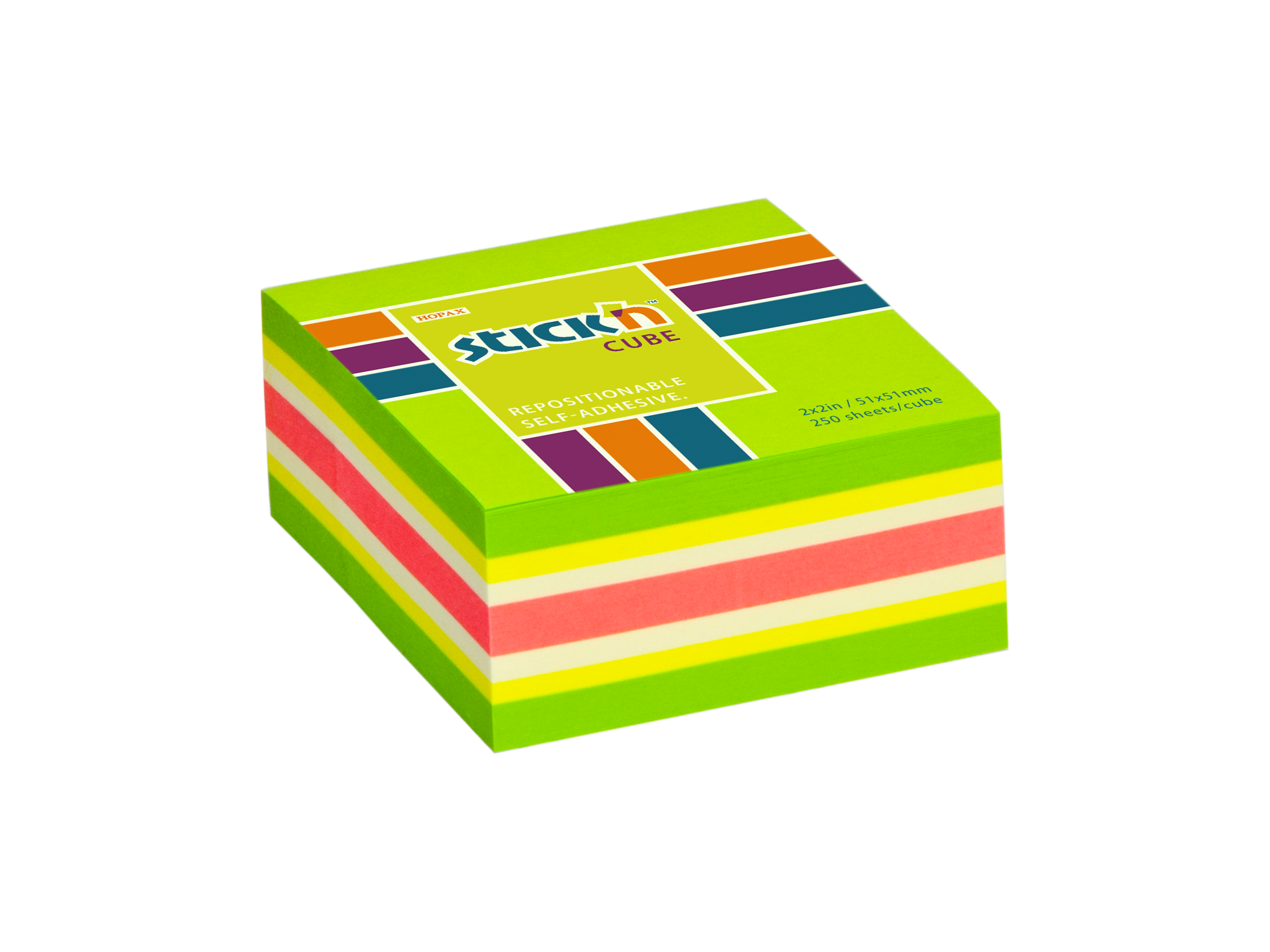 Samolepicí bloček kostka Stick'n by Hopax, 51 x 51 mm, neon zelený, 250 lístků