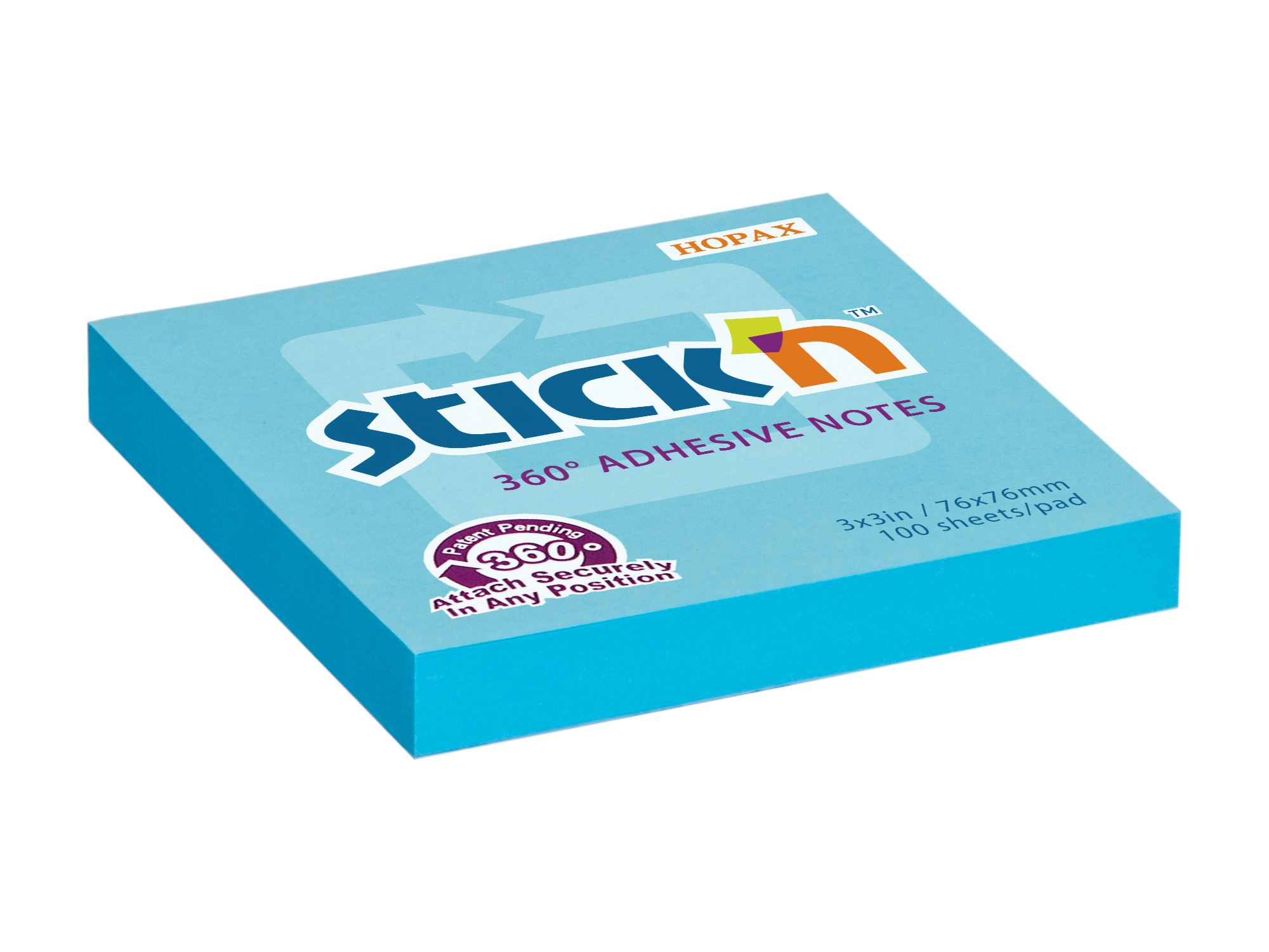 Samolepicí bloček Stick'n by Hopax 360°, 76 x 76 mm, modrý, 100 lístků