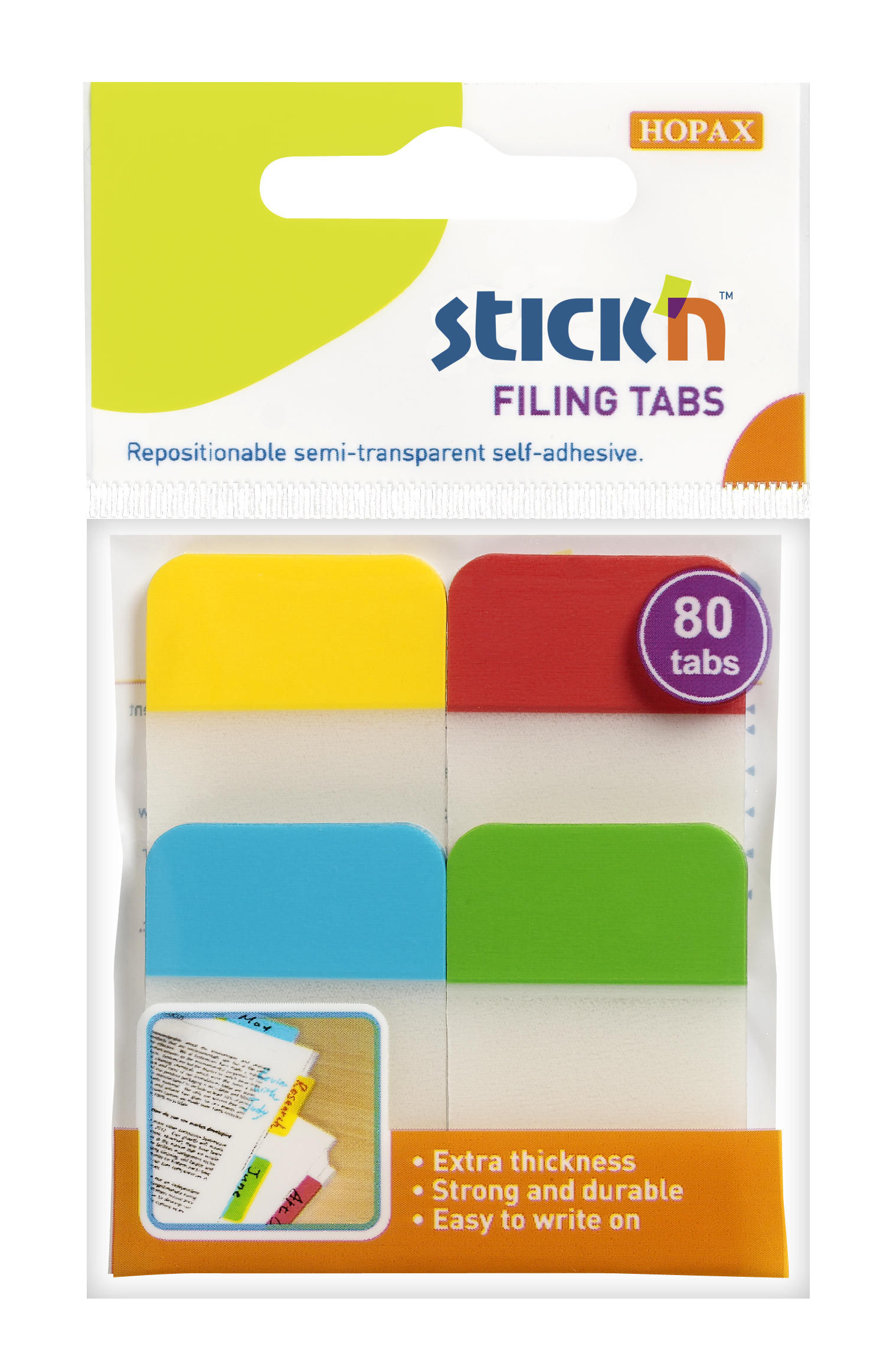 Samolepicí plastové záložky Stick'n by Hopax EXTRA PEVNÉ, 38 x 25 mm, mix barev, 4 x 20 záložek