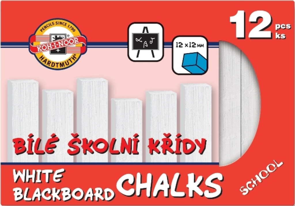 Křídy Koh-i-noor bílé, 12 kusů v krabičce.