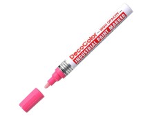 Lakový popisovač MARVY, je vybaven odolným kulatým hrotem, růžovým inkoustem a stopou šíře 2-4 mm. Voděodolný, neprůhledný, velmi dobře kryje. Uvnitř fixu se nachází kovová kulička, která promíchá barvu a zamezuje jejímu vyschnutí. Vhodný pro průmyslové použití a na většinu povrchů jako jsou dřevo, sklo, plast, kov, papír nebo porcelán.