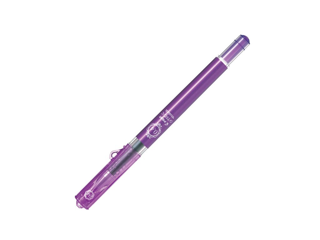 Jehličkový gelový roller s extra tenkou stopou a v široké nabídce barev. Ideální pro psaní v šablonách, přesnost psaní díky jehličkovému hrotu. Bio-Polymerová náplň zabraňuje rozpíjení a poskytuje hladké psaní. Atraktivní dívčí design, povrch těla pera v lákavých metalických barvách. Horní část víčka je ozdobena imitací diamantu. Průměr hrotu: 0,4 mm; Šířka stopy: 0,2 mm. Náplň 2504, barva: fialová.