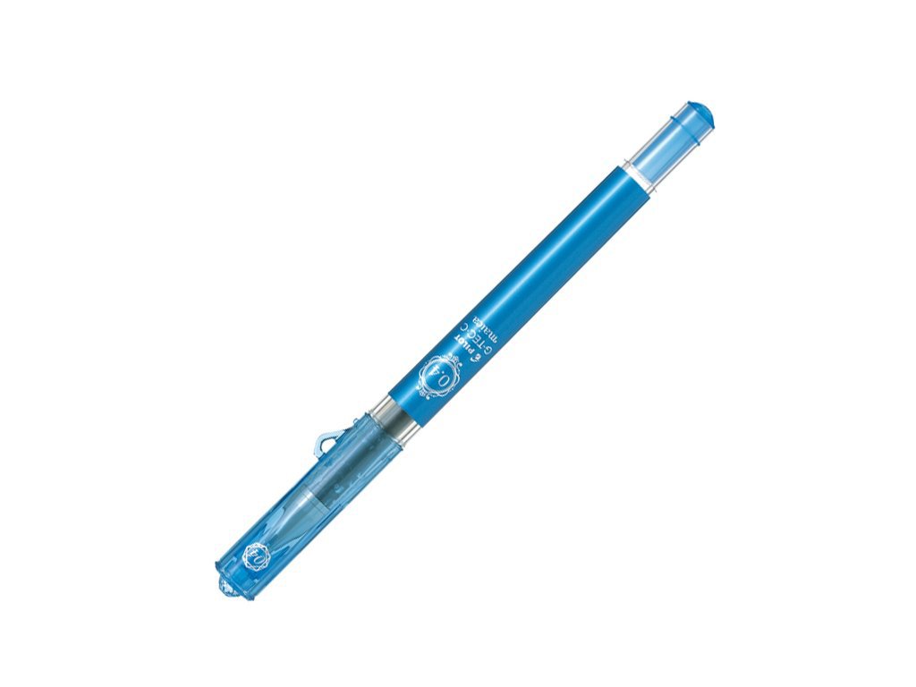 Jehličkový gelový roller s extra tenkou stopou a v široké nabídce barev. Ideální pro psaní v šablonách, přesnost psaní díky jehličkovému hrotu. Bio-Polymerová náplň zabraňuje rozpíjení a poskytuje hladké psaní. Atraktivní dívčí design, povrch těla pera v lákavých metalických barvách. Horní část víčka je ozdobena imitací diamantu. Průměr hrotu: 0,4 mm; Šířka stopy: 0,2 mm. Náplň 2504, barva: světle modrá.
