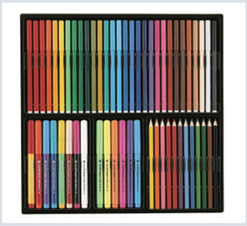 Souprava pro malé výtvarníky. Obsahuje 30 vypratelných fixů, 7 přebarvitelných značkovačů s jedním zmizíkem, 6 značkovačů s reflexním inkoustem a 12 pastelek s omalovánky. V praktickém obalu s ouškem.