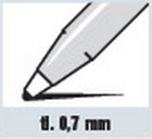 Prezentace v práci či ve škole budou se STABILO OHPen mnohem snazší. Tato řada popisovačů s neklouzavou úchopovou zónou se skvěle hodí například na psaní na průhledné prezentační folie nebo jiné hladké povrchy jako jsou (plast, sklo, kov, keramika…). Inkoust je na lihové bázi, bez zápachu. Šíře stopy 0,7 mm. Vydrží až 3 dny bez víčka. Doporučujeme však pokaždé uzavřít.