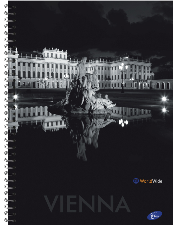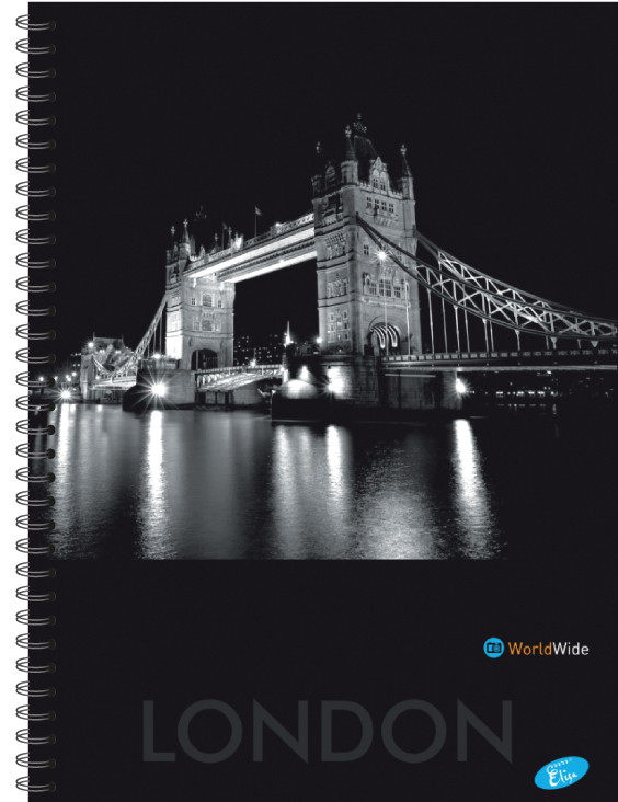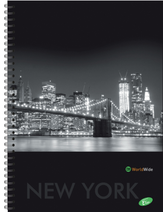 Působivé černobílé fotografie světových metropolí tvoří kolekci obalů kvalitních poznámkových bloků. Pevná obálka s matným povrchem a lesklým lakem zvýrazněnými detaily ve vazbě stříbrné dvojité spirály. Formát bloku A4, 70 listů (papír 70 g), linkovaný. Celkem 9 různých motivů. Balení: 25 ks.