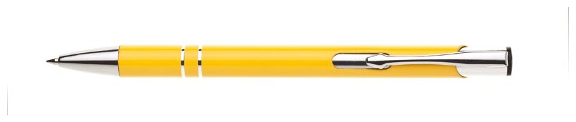 LOBIA je další varinta oblíbené propisky, liší se lakovaným tělem v barvách SOLID. Žluté tělo se dvěma stříbrnými proužky a chromovými doplňky. Laser na této tužce vychází šedivě.