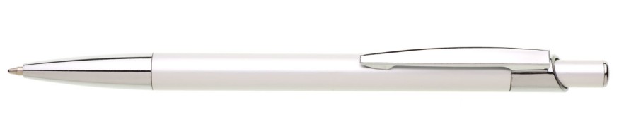 Kovová stříbrná propiska s lesklým povrchem a charakteristickou protáhlou špičkou. Špička i klip jsou pochromované.