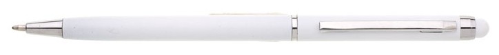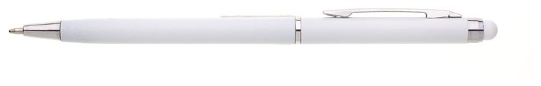 Plastové, kuličkové pero s tenkým, bílým tělem a s chromovými doplňky. Pero má otočný mechanismus a na konci těla touch pro dotykové displeje. Náplň X 20, modře píšící.