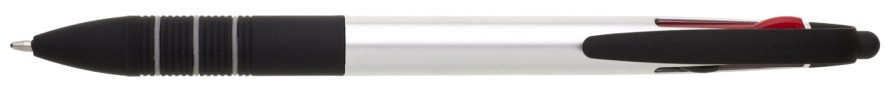 Plastová propiska 3 v1 pod názvem SARNO stříbrná píše modře, černě a červeně.Grip je v černé barvě a pogumovaný. Náplň X20 - 88 mm.