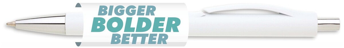 Propiska LINEA bílá má zajímavě řešený klip a stříbrné doplňky, modře píšící náplň. Kolekce DESIGN.