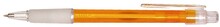 Kuličkové transparentní pero PROSTO. Má gumový úchop, tělo pera je oranžové. Klip a špička pera je průhledná.Náplň je X20, modře píšící.