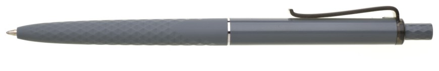 Tenká šedá propiska má 3D soft povrch ve spodní části, horní část propisky je hladká, vhodná pro umístění loga, Obě části odděluje tenký stříbrný kroužek. Klip je průhledný v barvě propisky. Kolekce DESIGN. Náplň X20 modře píšící.