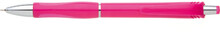 Růžová, plastová propiska s pochromovanými doplňky jako jsou klip, tělo cvakátka a proužek uprostřed těla tužky. Grip je částečně pogumovaný v barvě tužky, stejně jako klip a vrchní část cvakátka. Náplň X20, hrot 0,5mm.