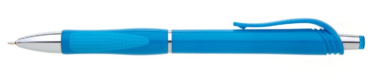 Tyrkysová, plastová propiska s pochromovanými doplňky jako jsou klip, tělo cvakátka a proužek uprostřed těla tužky. Grip je částečně pogumovaný v barvě tužky, stejně jako klip a vrchní část cvakátka. Náplň X20, hrot 0,5mm.