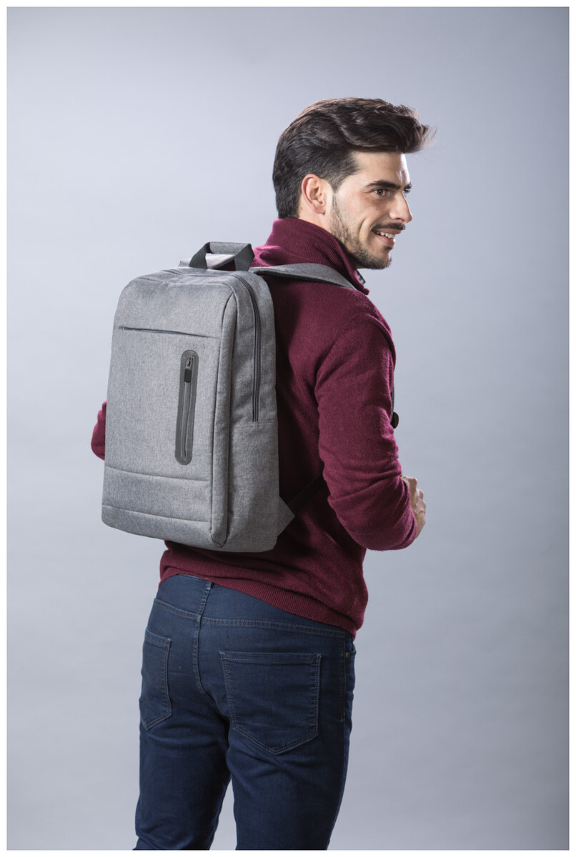 Batoh s mnoha přihrádkami na zip, vypolstrovanými popruhy a přihrádkou na laptop (15"). 600D polyester.