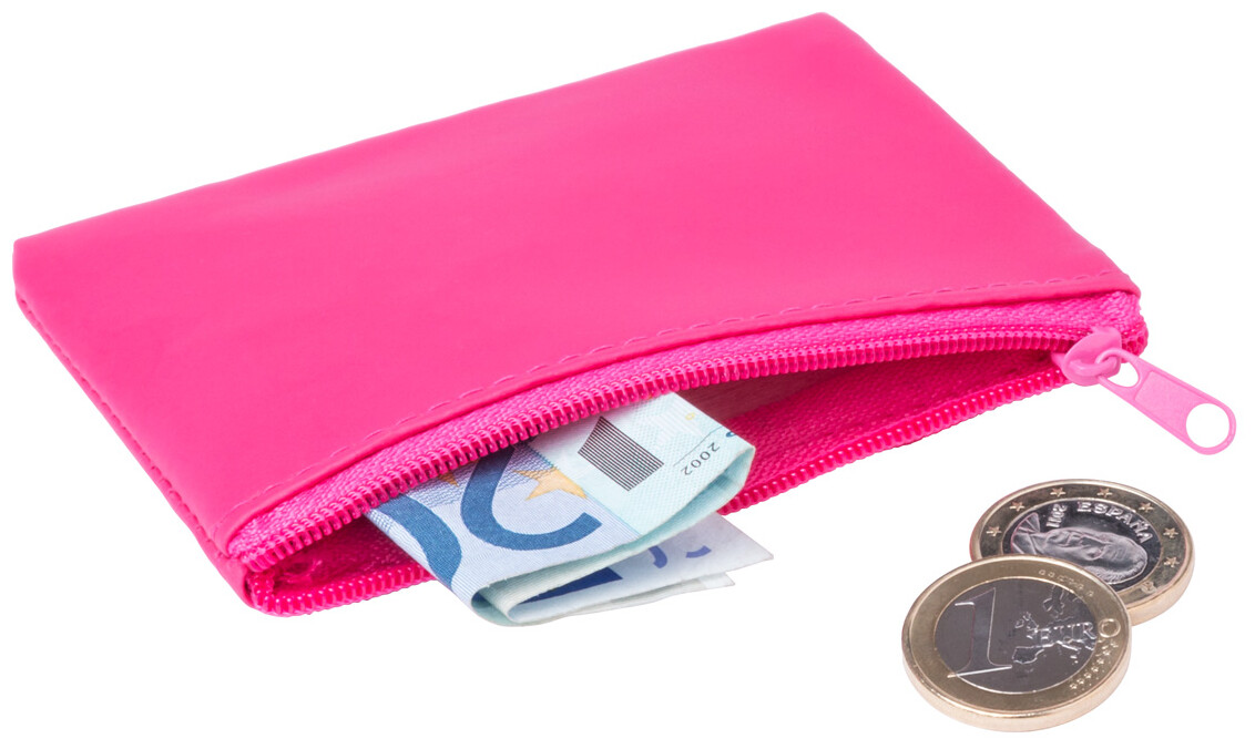 Peněženka na zip z PU kůže a přívěškem na klíče uvnitř.