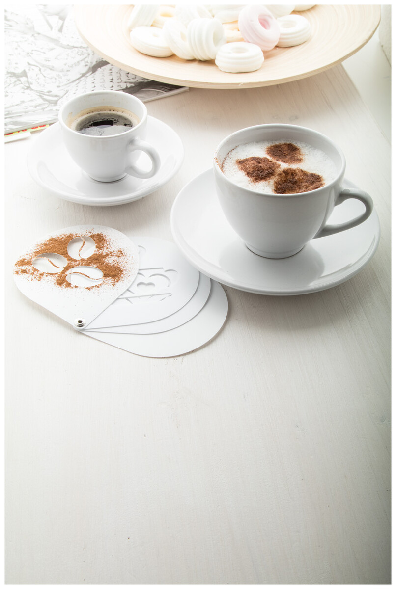 Keramická sada 2 ks šálků s podšálkem na cappuccino, 150 ml. V bílé papírové krabičce.