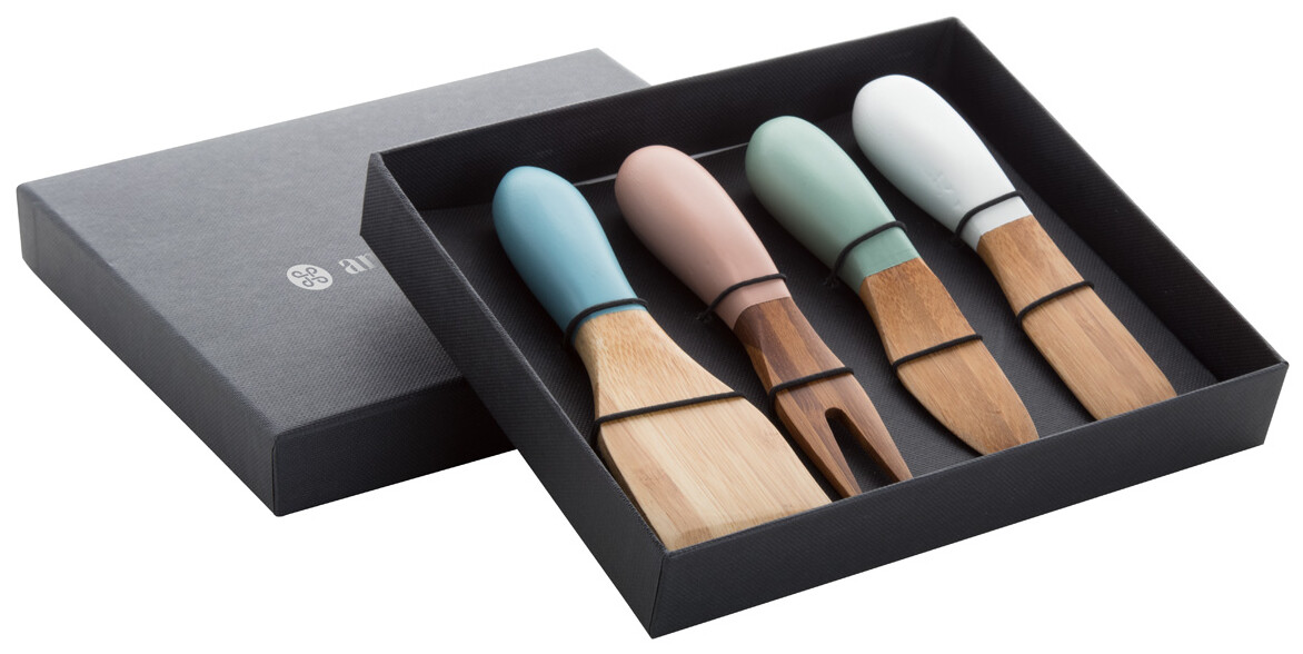 4dílná sada nožíků na sýry z bambusu, v černé dárkové krabičce. Značkový produkt André Philippe.