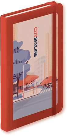 Blok s deskami z PU kůže, se 100 linkovanými listy, záložkou a gumičkou. Velikost A6.